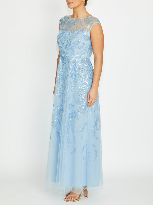Catalina Sky Blue Sequin Gown