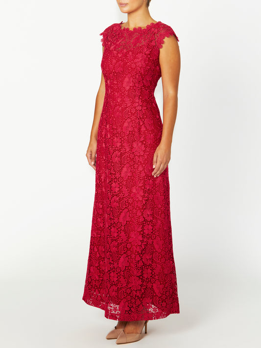 Millicent Raspberry Lace Gown